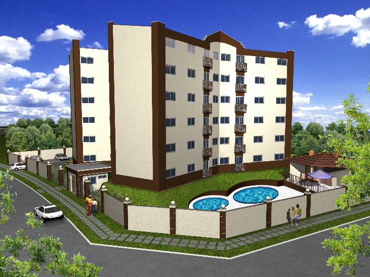 Um edifício de 6 pavimentos, com 4 apartamentos por pavimento, totalizando 24 apartamentos e 2.070,78m² de área construída;