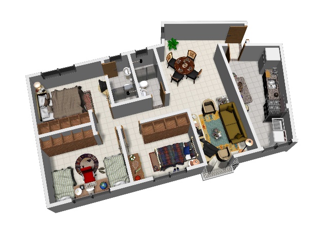 Os apartamentos possuem área construída de 88,16m² e são compostos de 3 dormitórios (sendo 1 suíte), 1 sala de estar, 1 sala de jantar, hall de circulação, banheiro social e cozinha com área de serviços;
