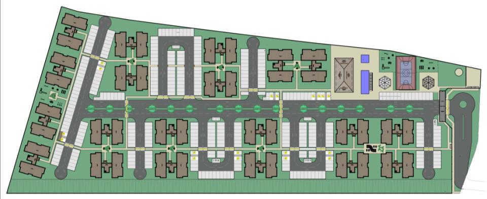 Condomínio com 20 edifícios de 4 pavimentos, com 4 apartamentos por pavimento, totalizando 320 unidades e 20.159,33m² de área construída;