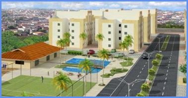 Condomínio com 33 edifícios de 4 pavimentos, com 22 apartamentos por edifício, totalizando 726 unidades e 39.738,34m² de área construída;