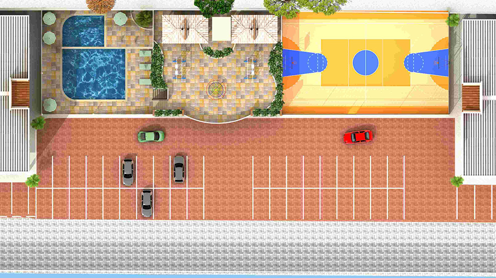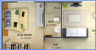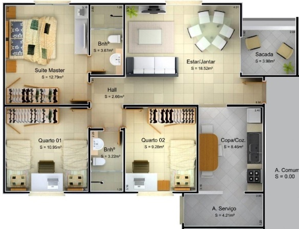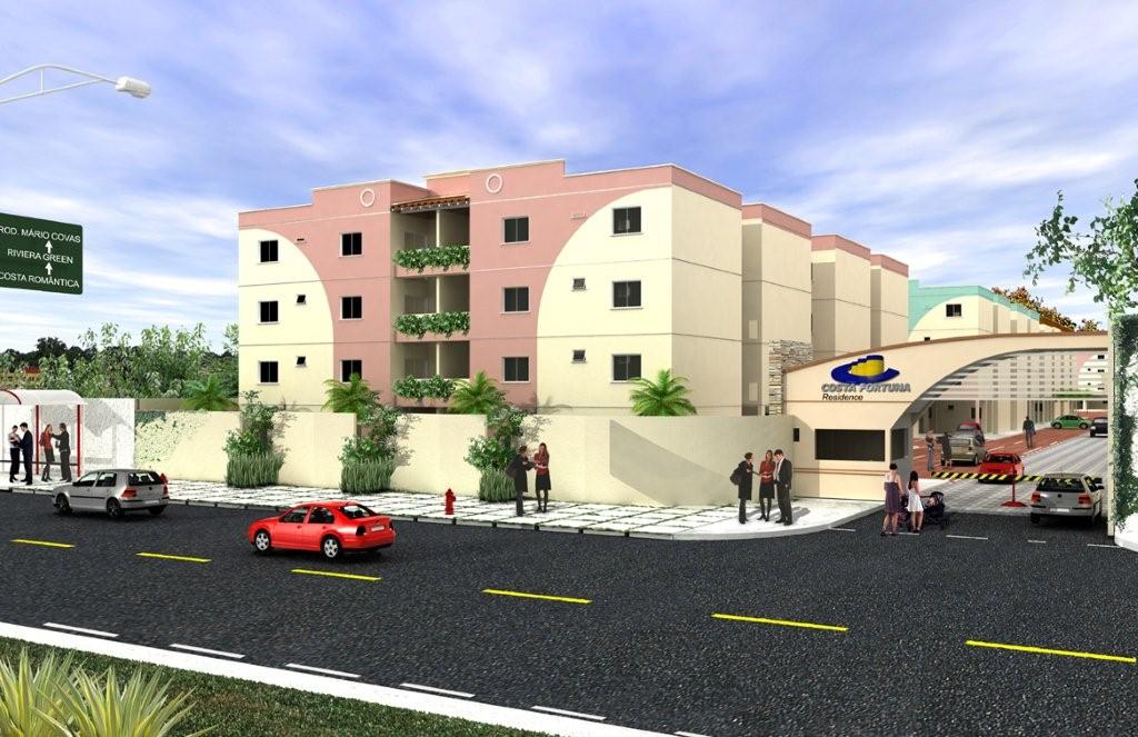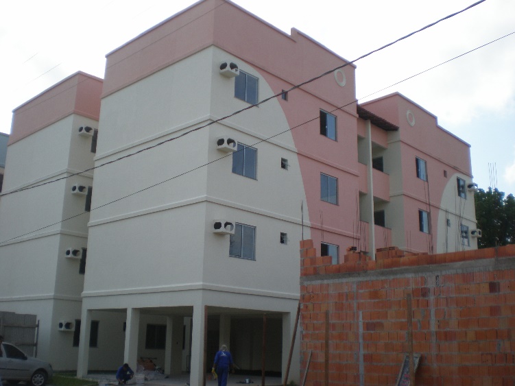 Cada apartamento possui 77,70m² de área construída, sendo composto de 1 sala de estar, varanda, 3 dormitórios (sendo 1 suíte), hall de circulação, 1 banheiro social, 1 cozinha e área de serviços;