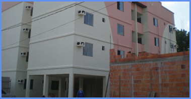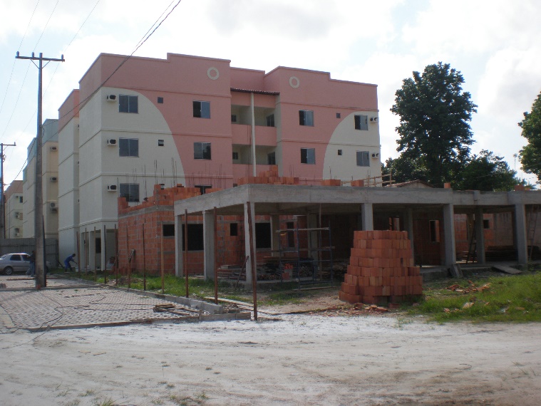 Condomínio com 11 edifícios de 4 pavimentos, com 14 apartamentos por edifício, totalizando 154 unidades e 13.162,38m² de área construída;