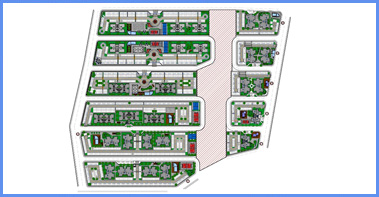 • O condomínio IX foi projetado numa área de 3.885,25m² e possui 2 edifícios de 7 pavimentos, ambos com 6 aptos por pavimento, num total de 78 apartamentos de 2 quartos com suíte;