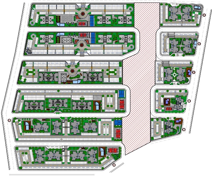Composto por 11 condomínios que totalizam 27 edifícios e 1288 apartamentos, que foram concebidos da seguinte forma: