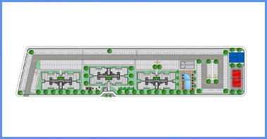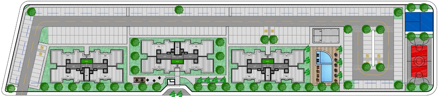 • O condomínio III foi projetado numa área de 11.941,56m² e possui 2 edifícios de 7 pavimentos e 1 edifícios de 6 pavimentos, todos com 8 aptos por pavimento, sendo 4 aptos de 2 quartos com suíte e 4 aptos com 3 quartos com suíte, num total de 240 apartamentos, sendo 120 de 2 quartos e 120 de 3 quartos;