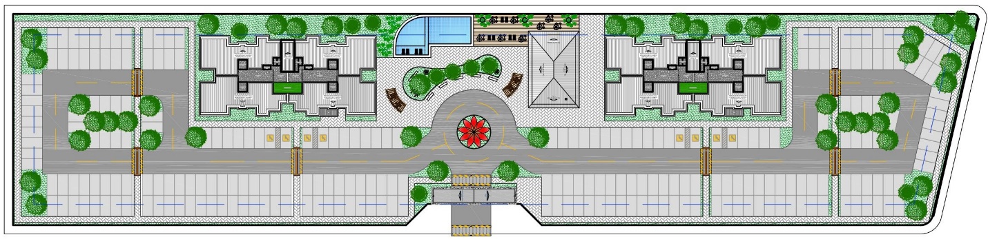 • O condomínio II foi projetado numa área de 11.703,56m² e possui 2 edifícios de 9 pavimentos e 2 edifícios de 8 pavimentos, todos com 6 aptos por pavimento, num total de 204 apartamentos de 2 quartos com suíte;