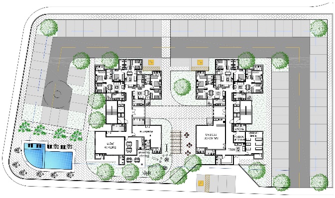 • O condomínio I foi projetado numa área de 10.699,02m² e possui 2 edifícios de 8 pavimentos e 2 edifícios de 7 pavimentos, todos com 6 aptos por pavimento, num total de 180 apartamentos de 2 quartos com suíte;Os aptos Tipo “A” possuem 52,01m² de área construída, sendo composto de 1 sala de estar e jantar, varanda, 2 dormitórios, hall de circulação, banheiro social, cozinha e área de serviços;