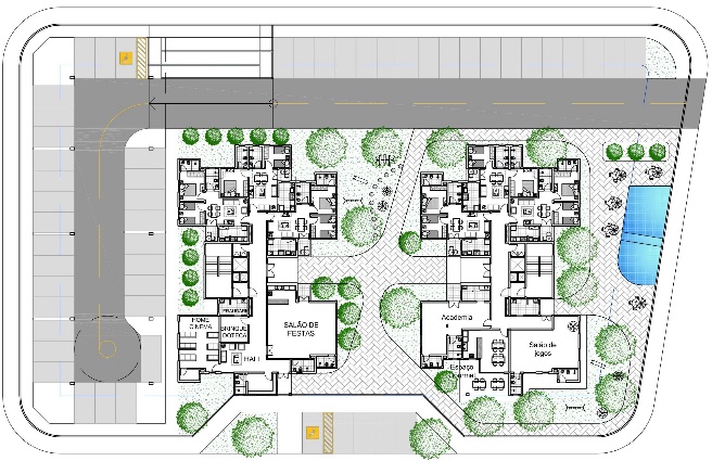 • Quadra poliesportiva;Cada condomínio possui infraestrutura que conta com: