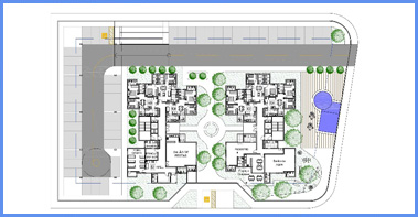 • O condomínio VIII foi projetado numa área de 3.877,90m² e possui 2 edifícios de 7 pavimentos, ambos com 6 aptos por pavimento, num total de 78 apartamentos de 2 quartos com suíte;