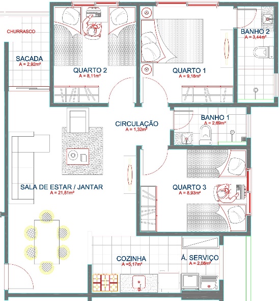 Figura 10 – Planta do Apto de 3 quartos