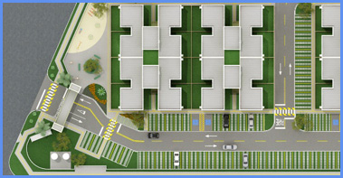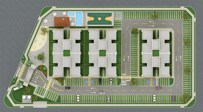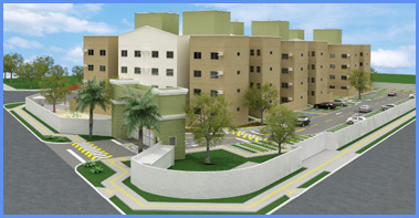 Condomínio com 3 edifícios de 4 pavimentos, com 8 apartamentos por pavimento, totalizando 96 unidades e 5.011,78m² de área construída;