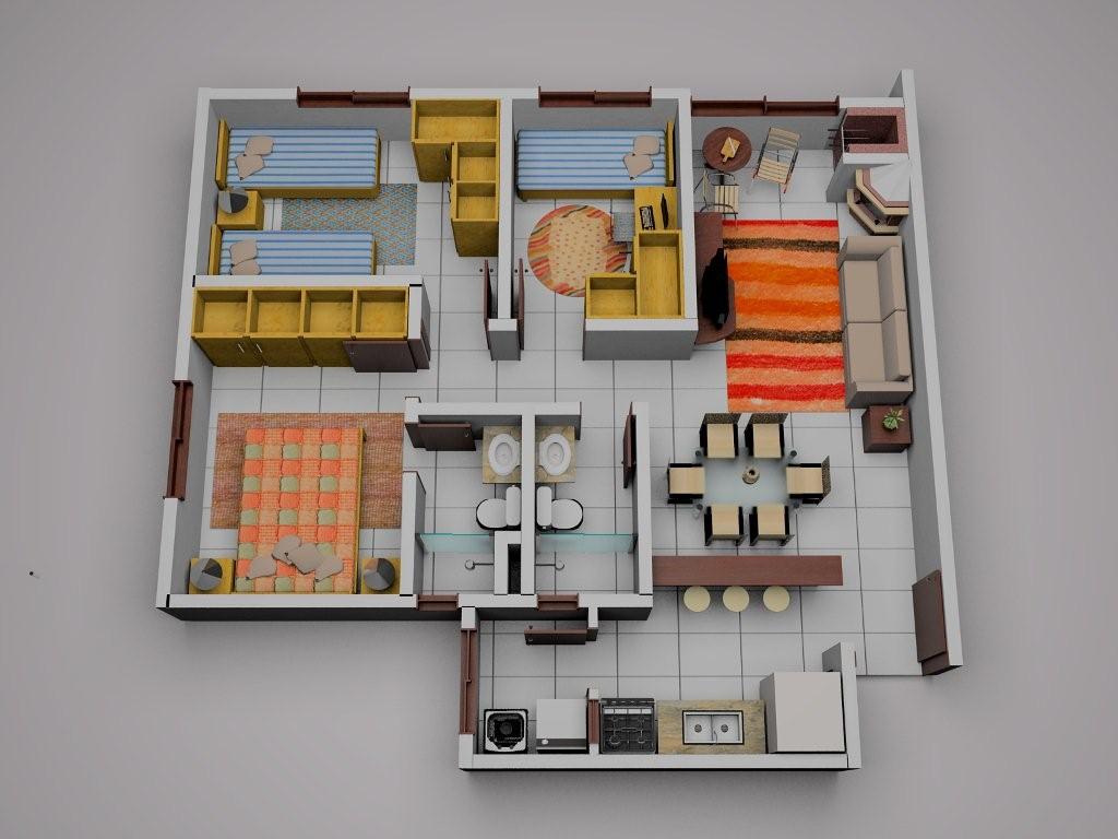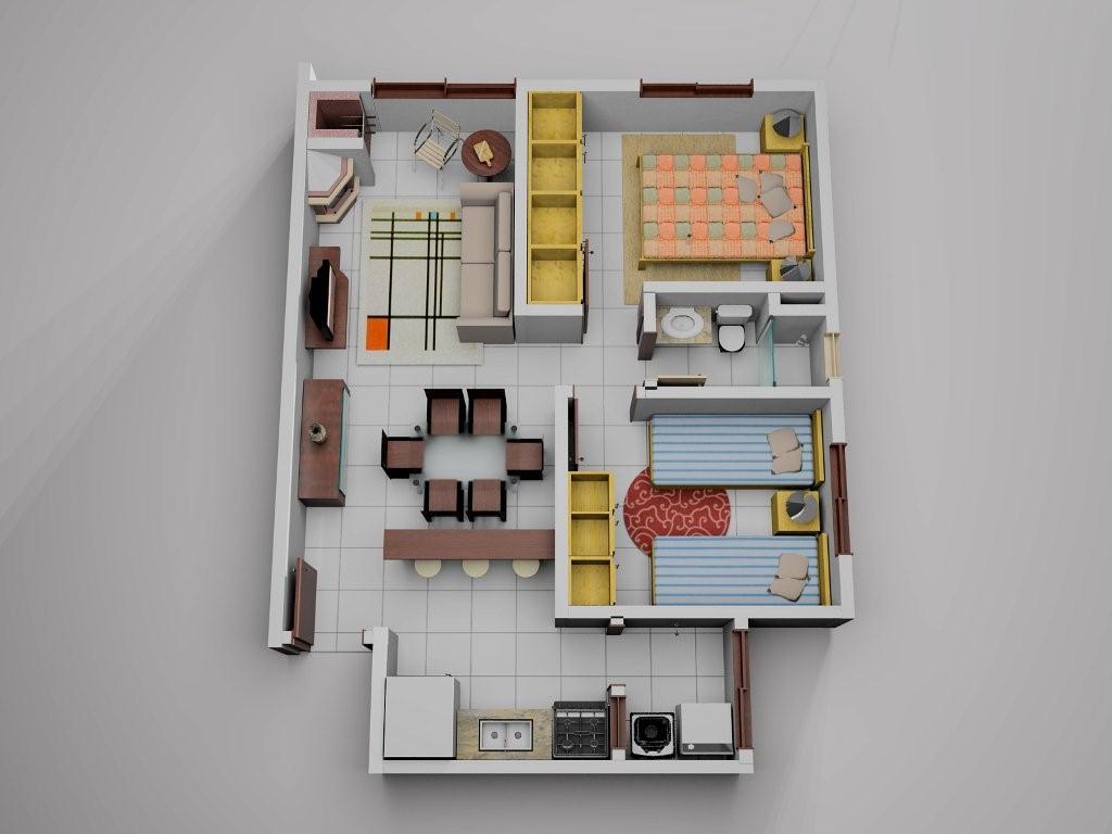 • Condomínio Esmeralda: 208 unidadesApto de 2 quartos com 54,97m² contendo 2 dormitórios, sala de jantar e estar com lareira, varanda gourmet, hall de circulação, banheiro social e cozinha com área de serviços;