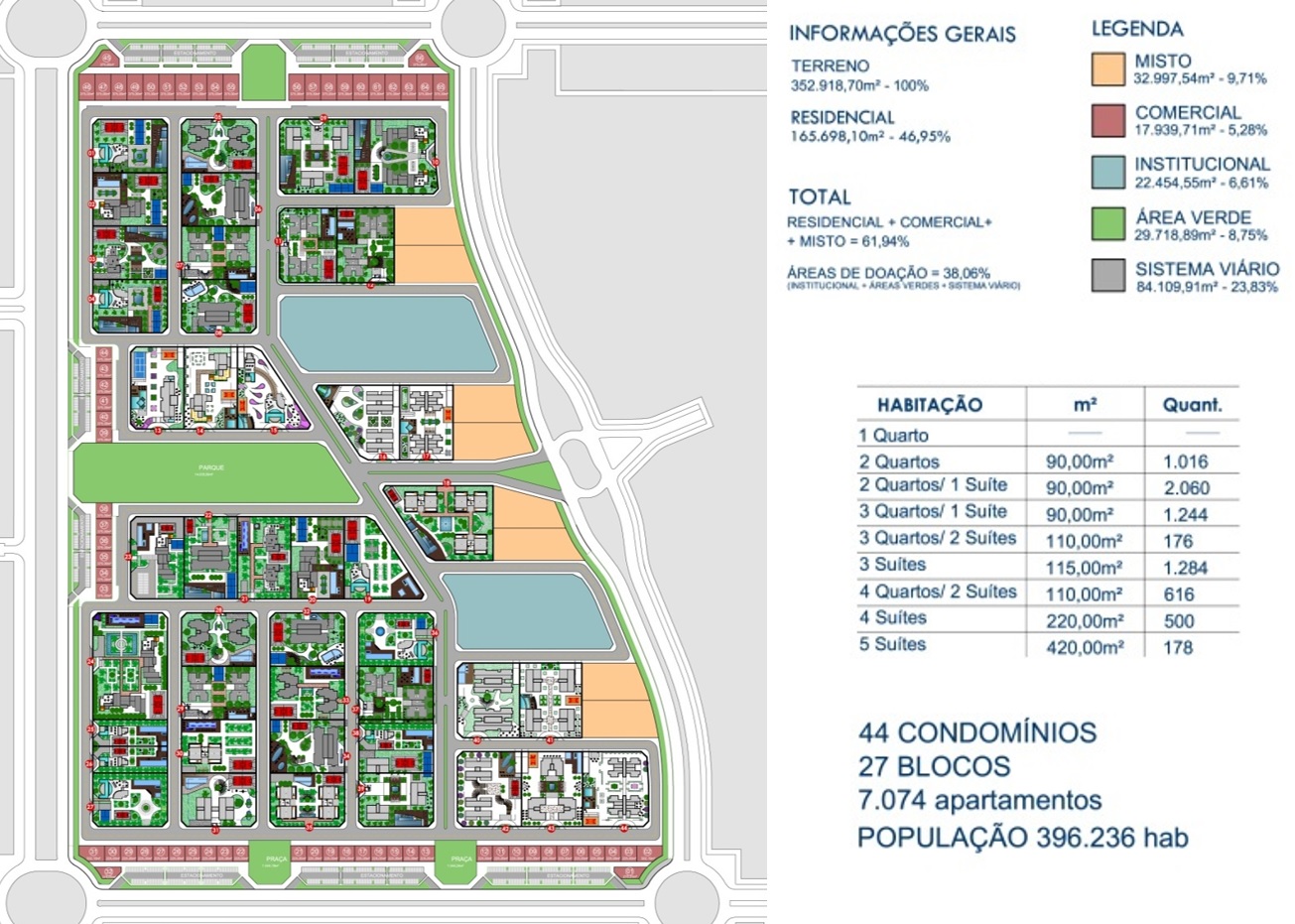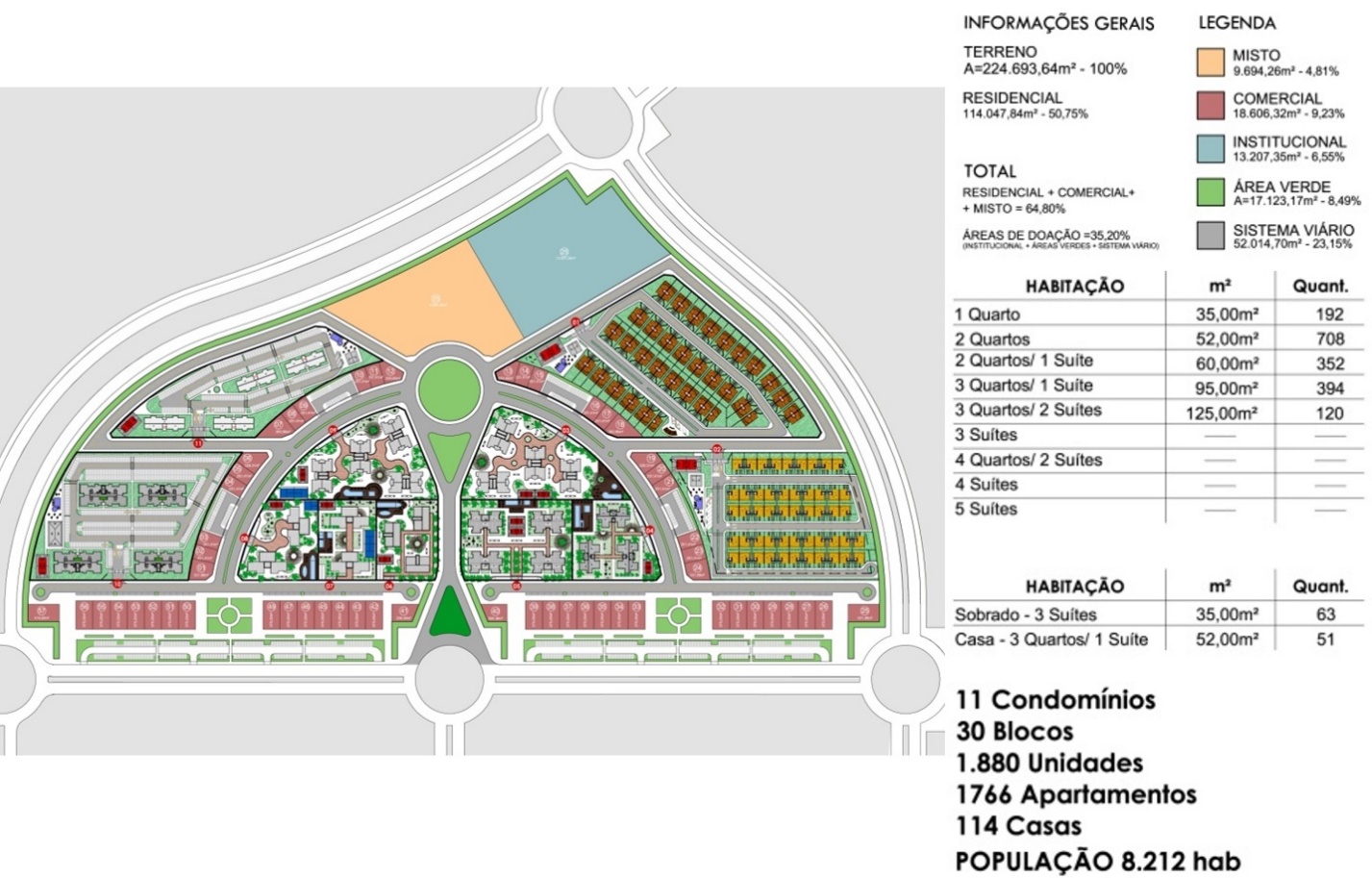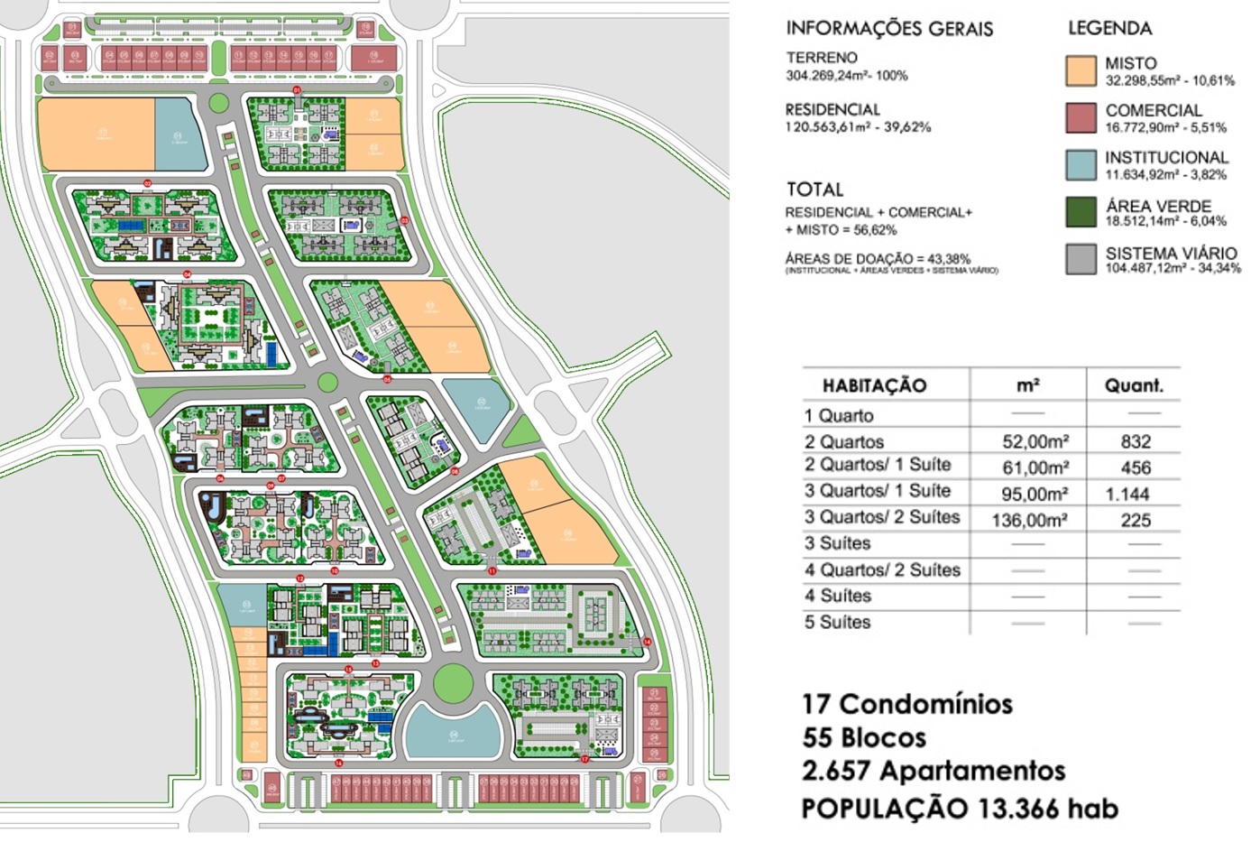 Bairro vertical desenvolvido em 5 superquadras que totalizam 1.502.843,76m² localizadas ao final da Av. Jucelino Kubitscheck, próximo à Praia da Graciosa, Palmas, TO. Serão implantadas 16.429 unidades habitacionais que atenderá a população de 90.074 pessoas.