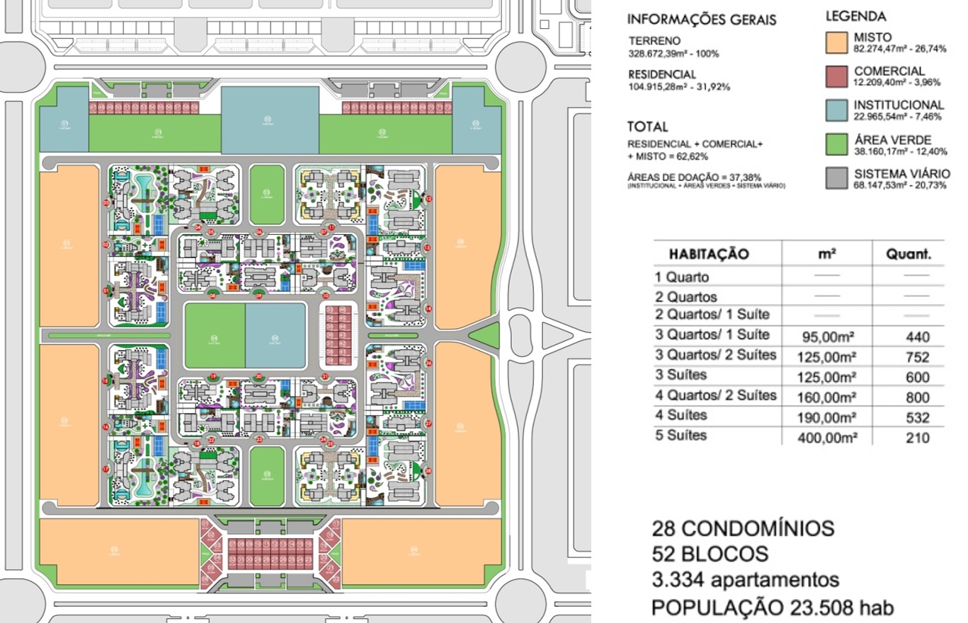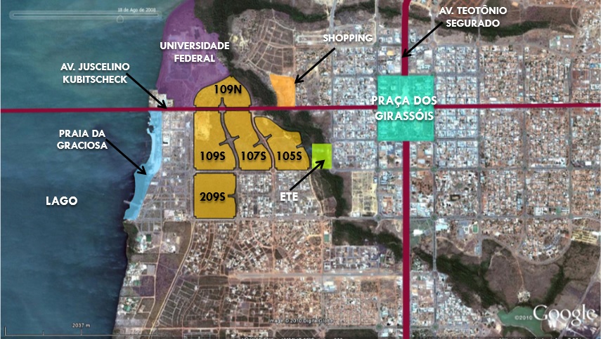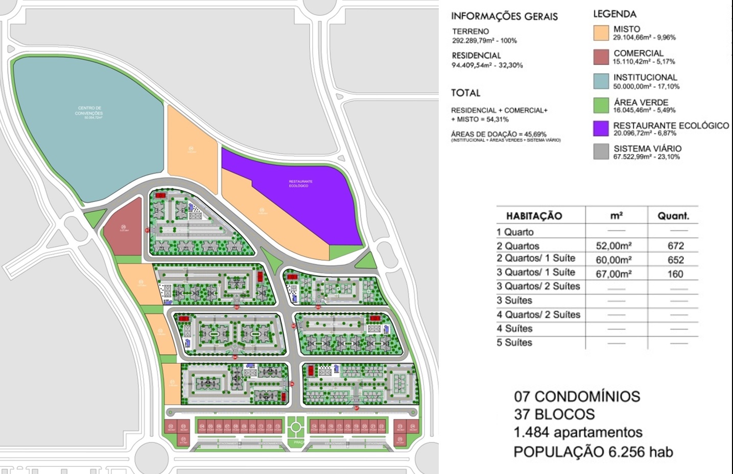 Bairro vertical desenvolvido em 5 superquadras que totalizam 1.502.843,76m² localizadas ao final da Av. Jucelino Kubitscheck, próximo à Praia da Graciosa, Palmas, TO. Serão implantadas 16.429 unidades habitacionais que atenderá a população de 90.074 pessoas.