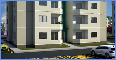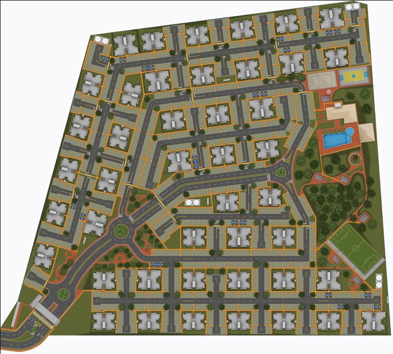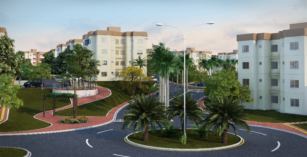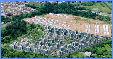 Condomínio com 44 edifícios de 4 pavimentos, com 16 apartamentos por edifício, totalizando 704 unidades e 44.289,74m² de área construída;