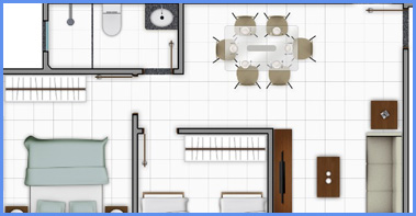 O apto Tipo “A” possui 53,27m² de área construída, sendo composto de 1 sala de estar, varanda, 2 dormitórios, hall de circulação, 1 banheiro social, 1 cozinha e área de serviços;