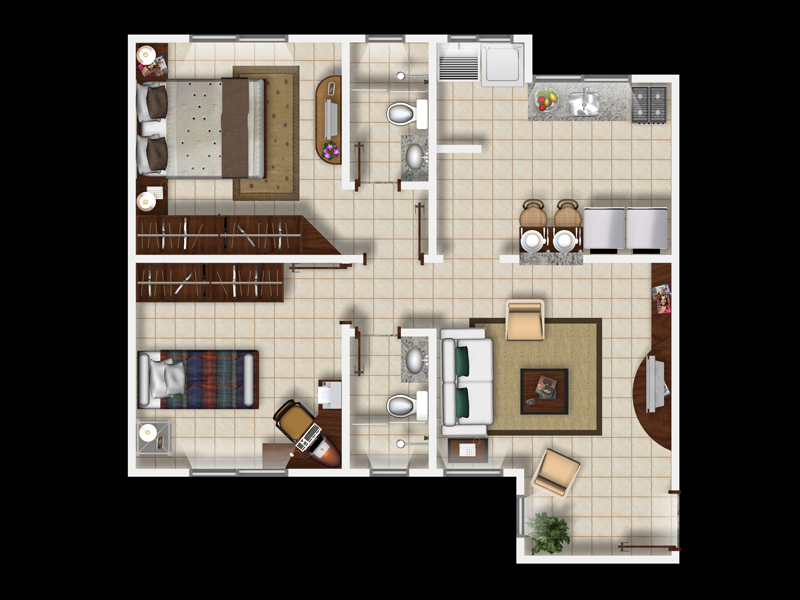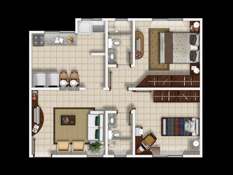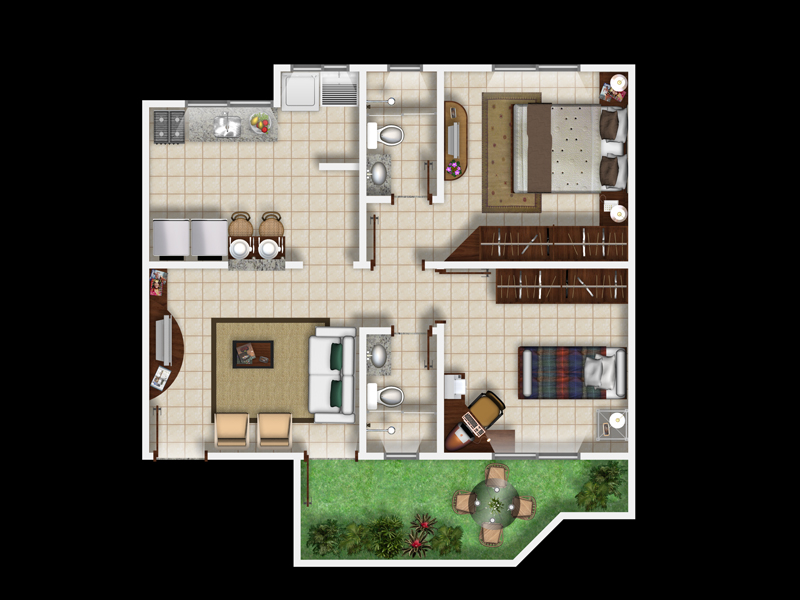 O apartamento Tipo “C†possui 62,61m² de área construÃda, sendo composto de 1 sala de estar, varanda interna, 2 dormitórios (sendo um suÃte), hall de circulação, 1 banheiro social, 1 cozinha e área de serviços;