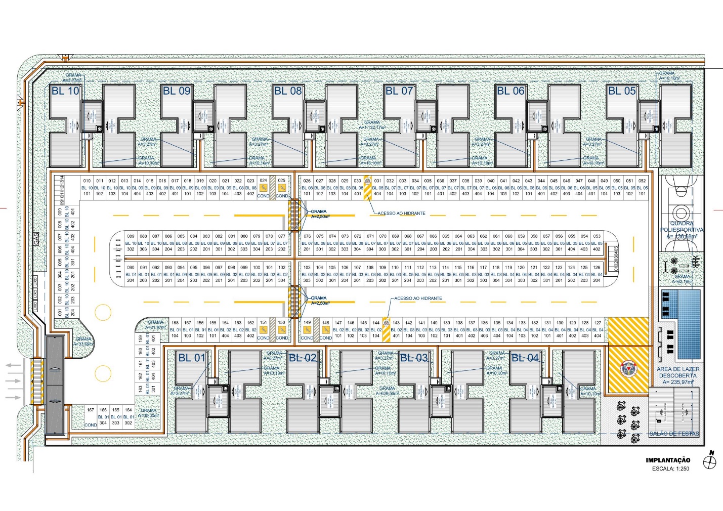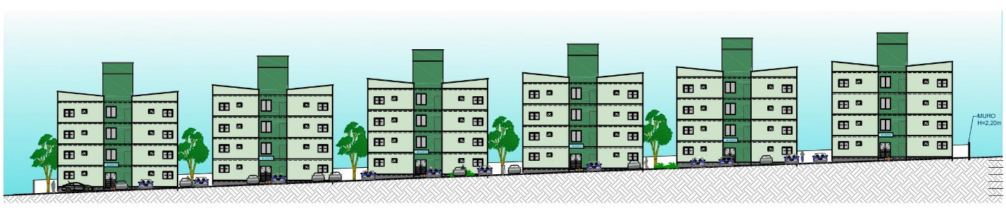 Possui 10 edifícios de 4 pavimentos cada, com 4 apartamentos por pavimento, totalizando 160 apartamentos e 9.082,22m² de área construída;