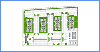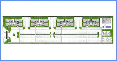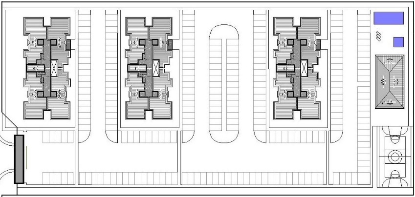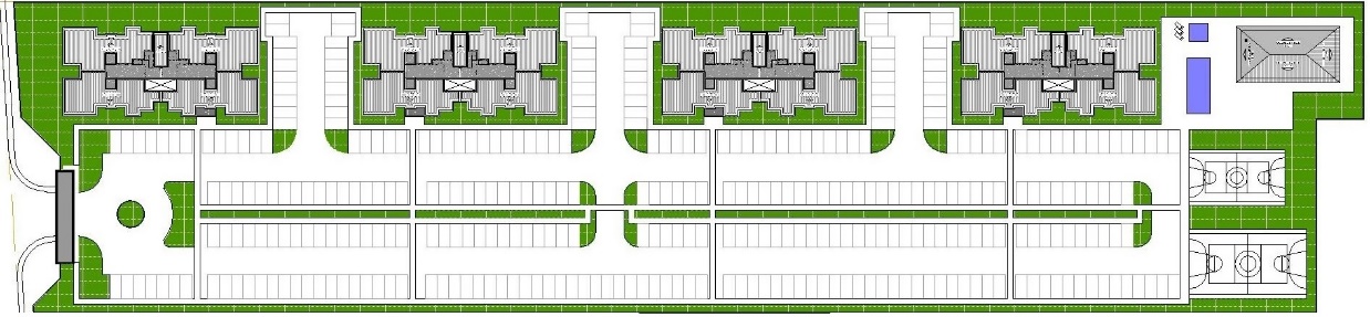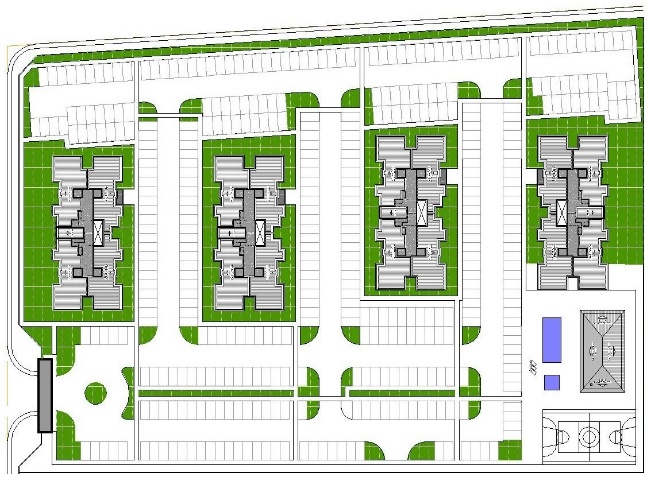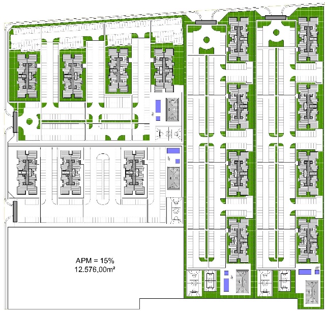 Composto por 4 condomÃnios com 15 edifÃcios de 4 pavimentos e 32 aptos por edifÃcio, totalizando 480 apartamentos de 2 quartos;
